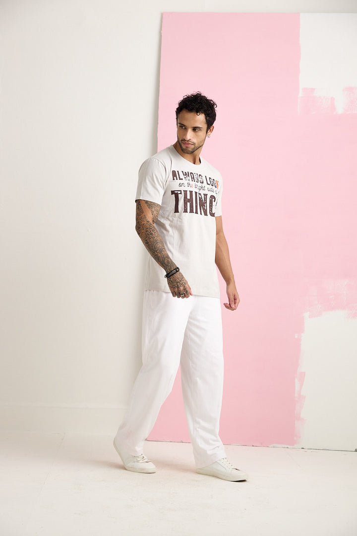 It features an oversized round neck design that gives it a trendy and relaxed vibe. Right in the center of the front, there's a cool print that adds a touch of style and personality. And the best part It's made of soft and breathable cotton fabric, ensuring maximum comfort throughout the day.