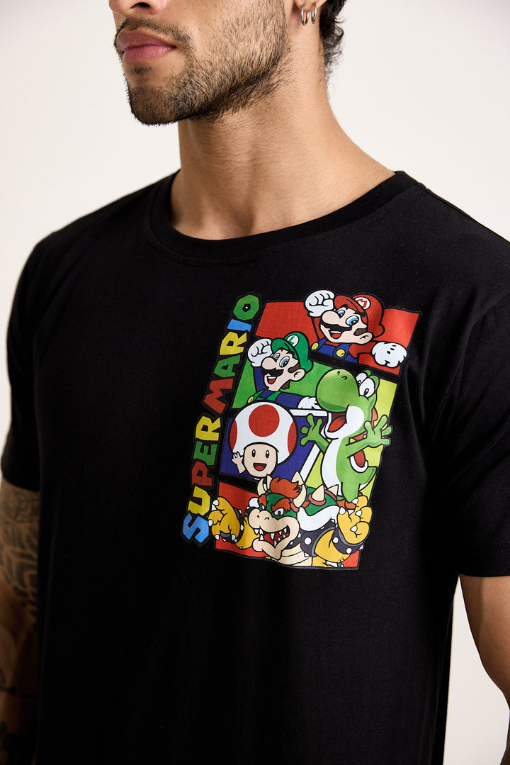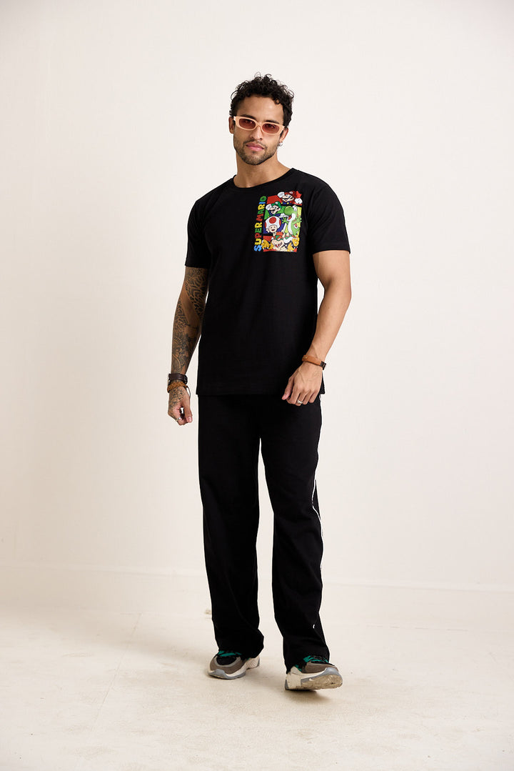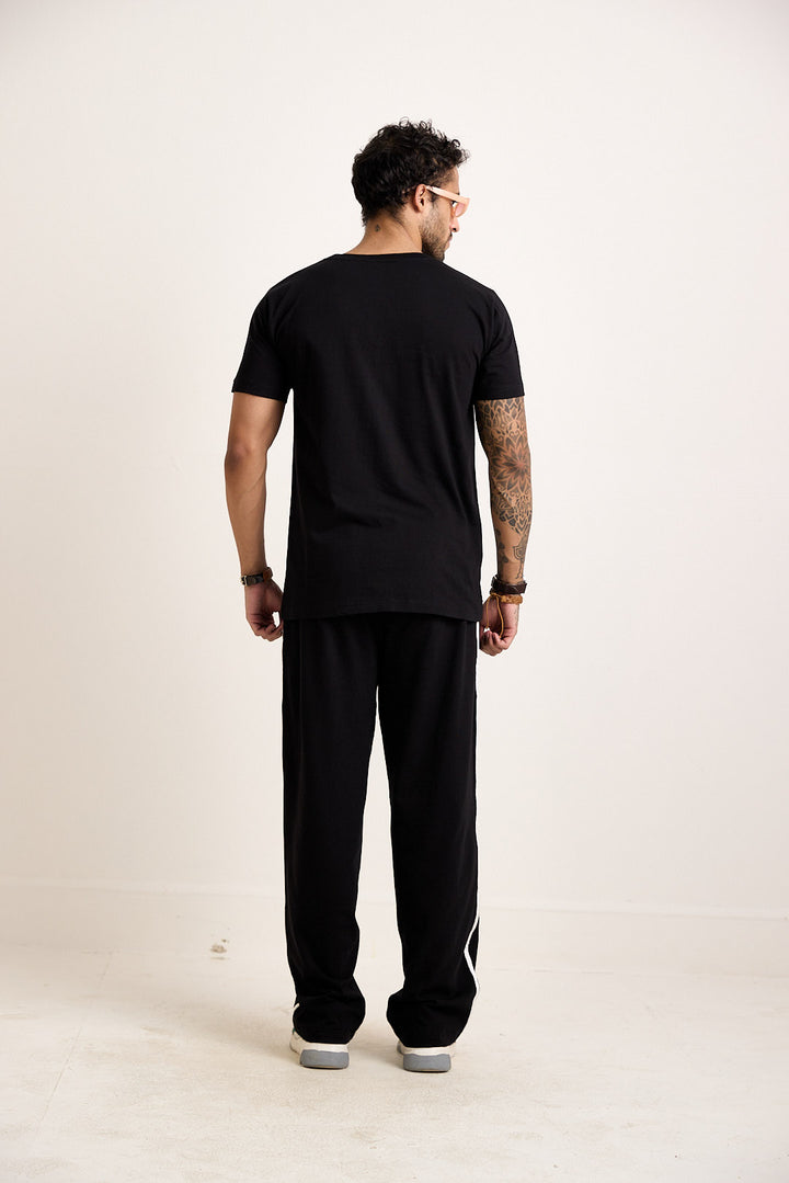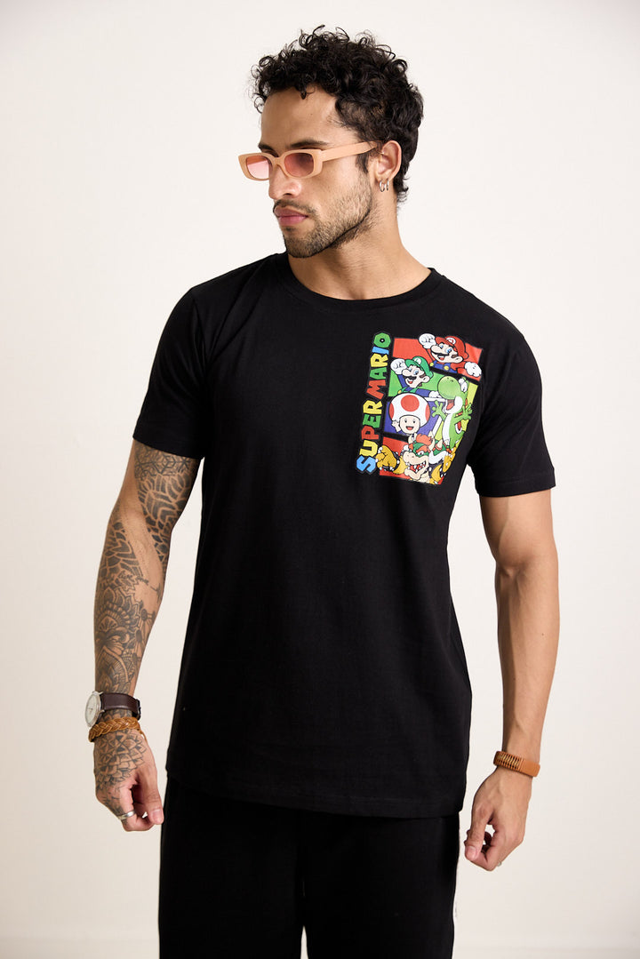 A black t-shirt for men with a print on left side front. It has a regular fit, so it's comfortable and easy to wear. The t-shirt features a classic round neck and half sleeves, making it perfect for casual, Basic wear.