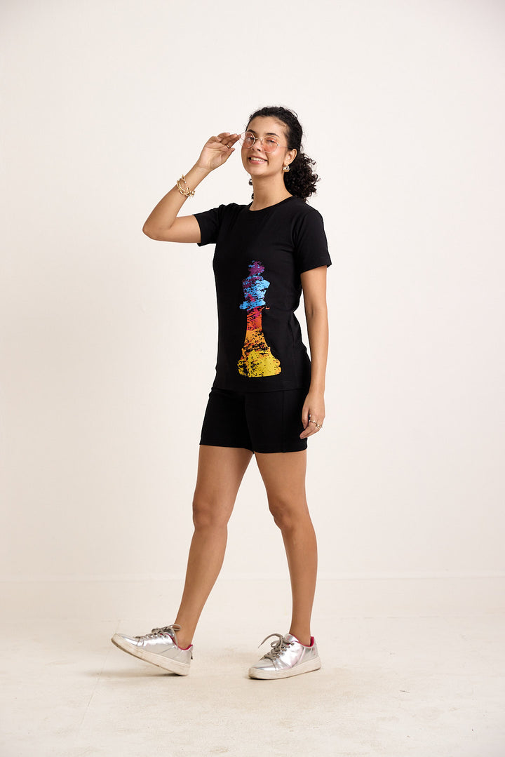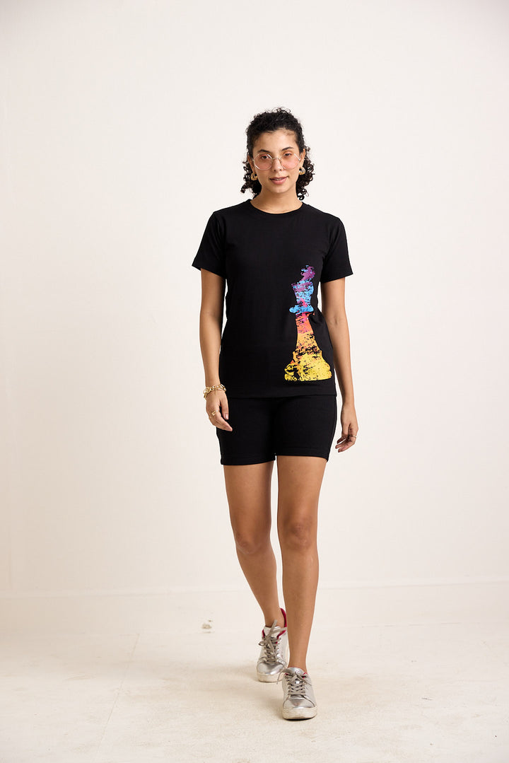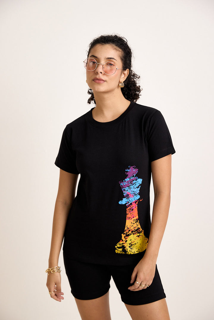 This t-shirt is made of soft cotton fabric, ensuring comfort and breathability. It features a stylish print on the front, adding a trendy and eye-catching element to the design. The slim fit silhouette gives a flattering look, while the round neck offers a versatile neckline that can be easily styled.
