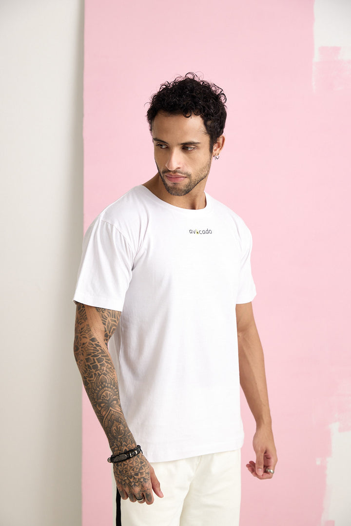 The t-shirt has a solid color, which gives it a clean and versatile look. It's perfect for pairing with jeans or shorts for a casual and cool outfit. With its half sleeves, this t-shirt is great for warmer days. And here's a fun detail: there's a small branding mascot at the back, adding a touch of uniqueness to the design.